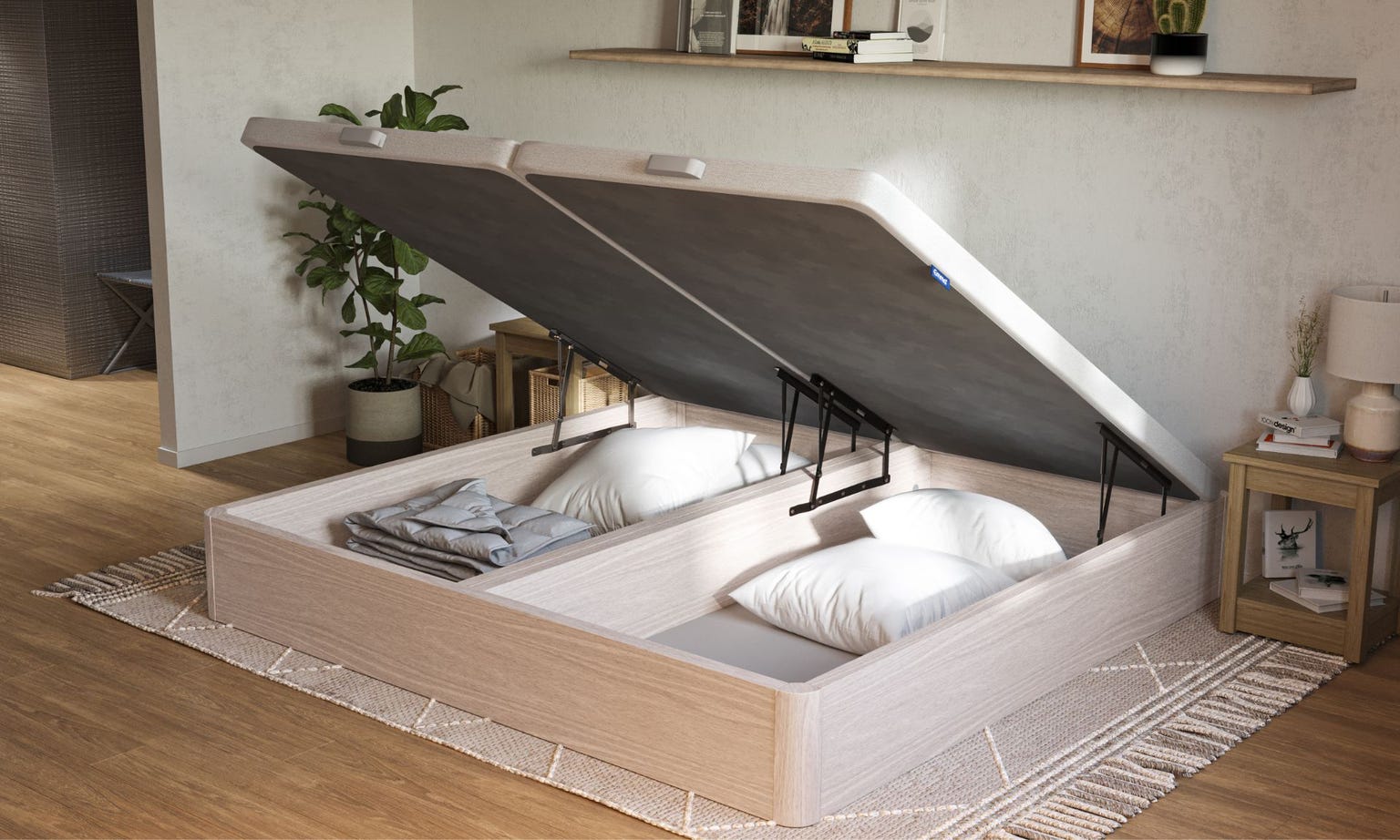 La tapa de alta resistencia de 7 cm está reforzada interiormente con marco de tubo de acero de 40x30mm y barras transversales, garantizando la resistencia y durabilidad de la misma y proporcionando un soporte óptimo al colchón.